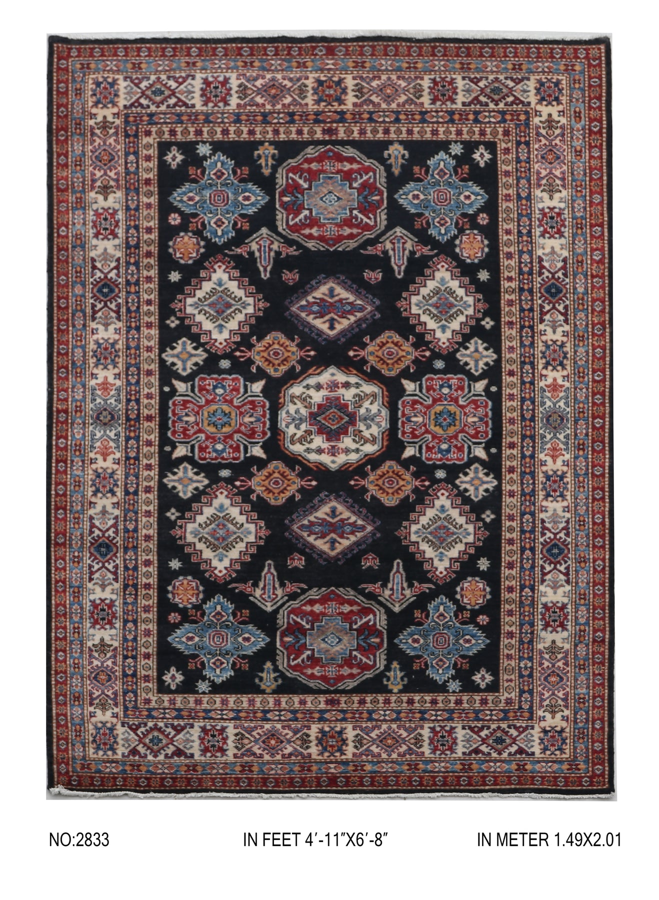 This Super Kazak Rug is a masterpiece of traditional craftsmanship, handwoven with premium natural materials. Originating from the Caucasus-inspired weaving traditions of Afghanistan, this rug reflects timeless artistry and cultural heritage.
