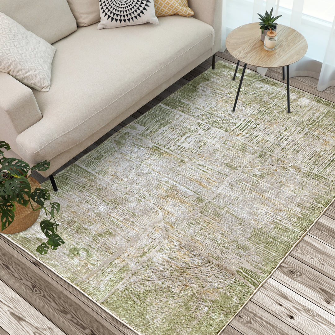 Green & Beige Abstract Turkish Rug 4X6 FT