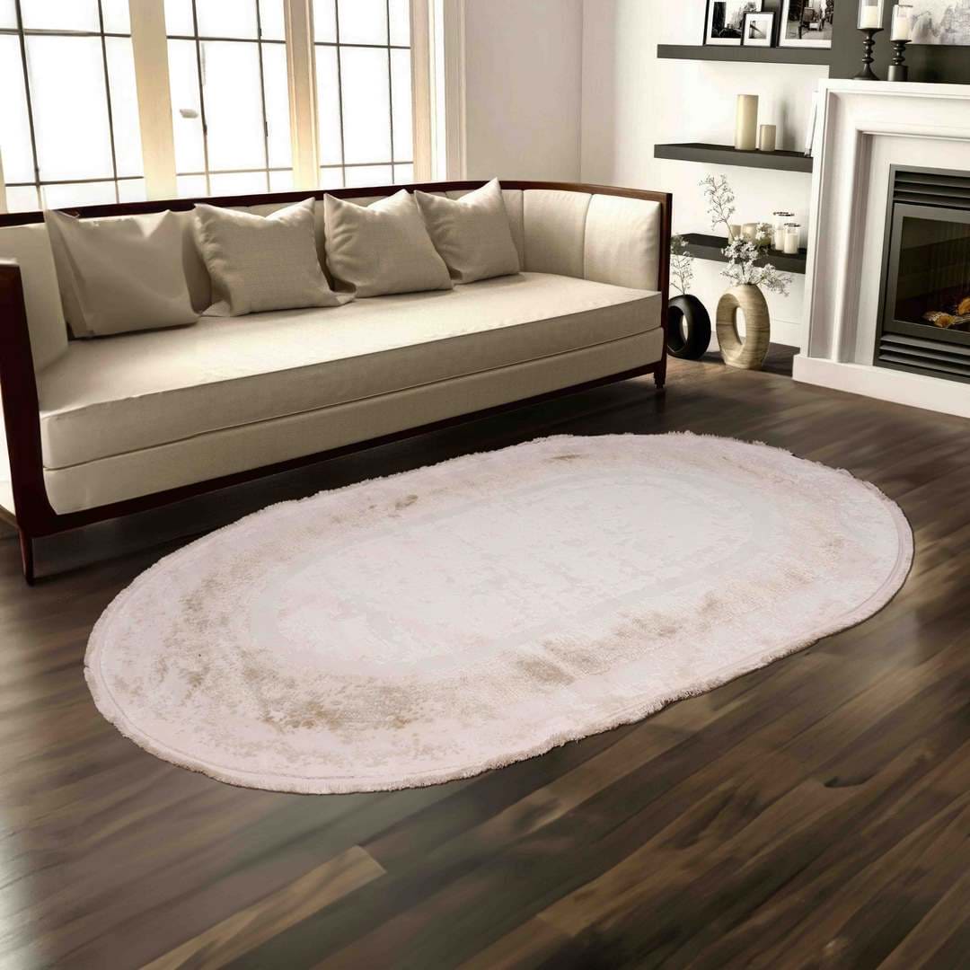 Beige Floral Turkish Oval Rug 5X8 Ft
