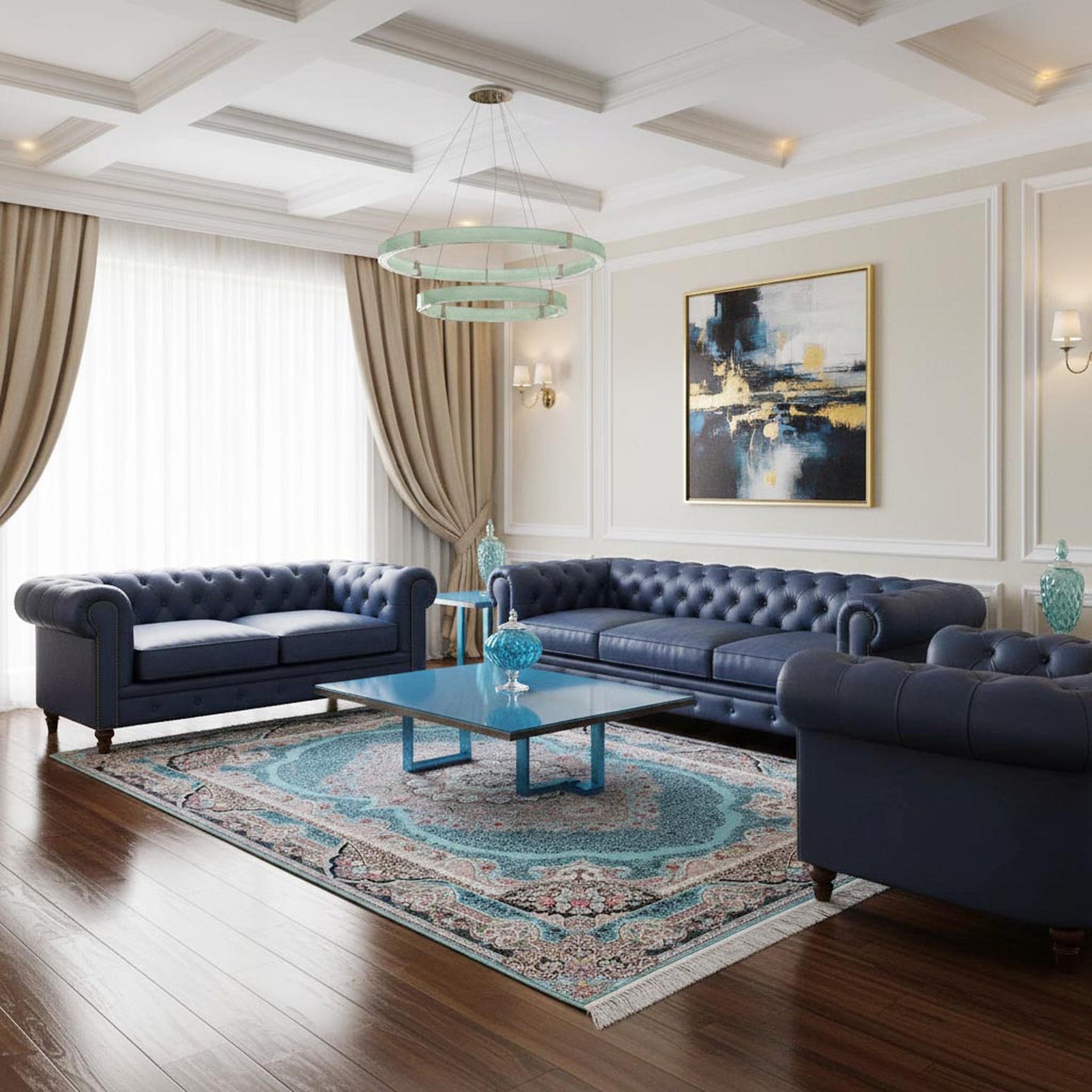 Bold turquoise Ferozi Super Persian Rug 7x10 FT