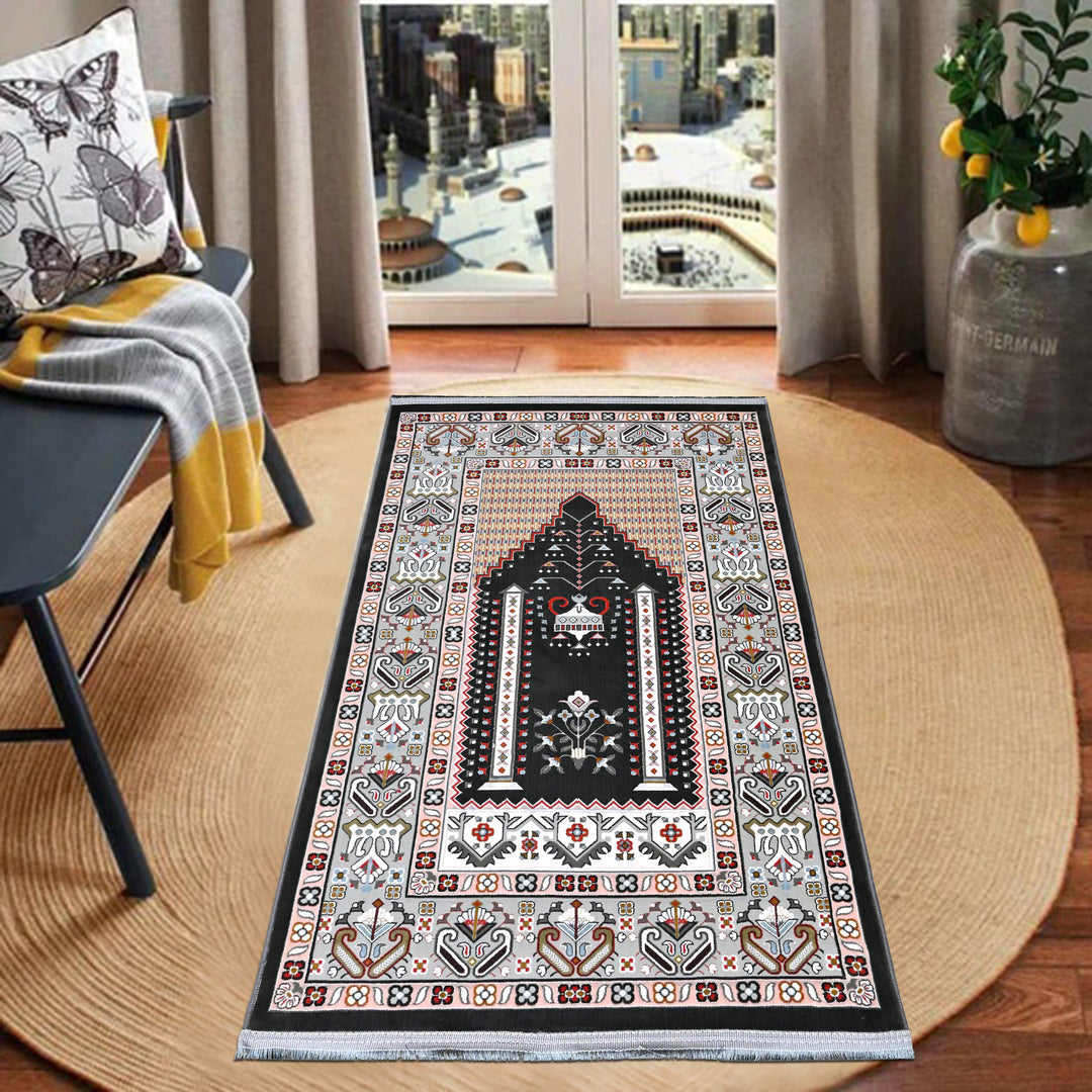 Black Silver Turkish Prayer Rug 2.5x4 FT