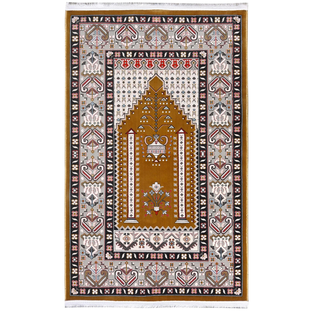 Mustard Gold Persian Khas Prayer Rug 2.5x4 FT