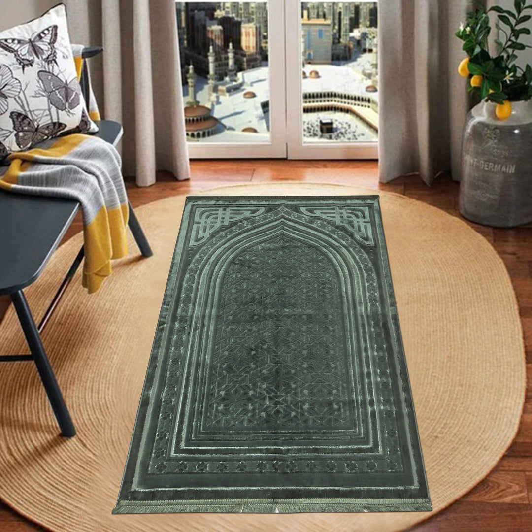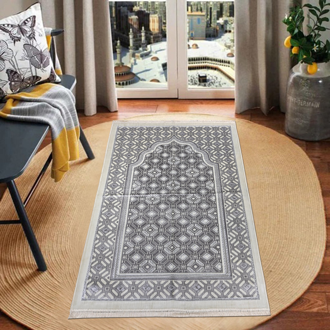 Grey Embossed Turkish Prayer Rug 2.5x4 FT