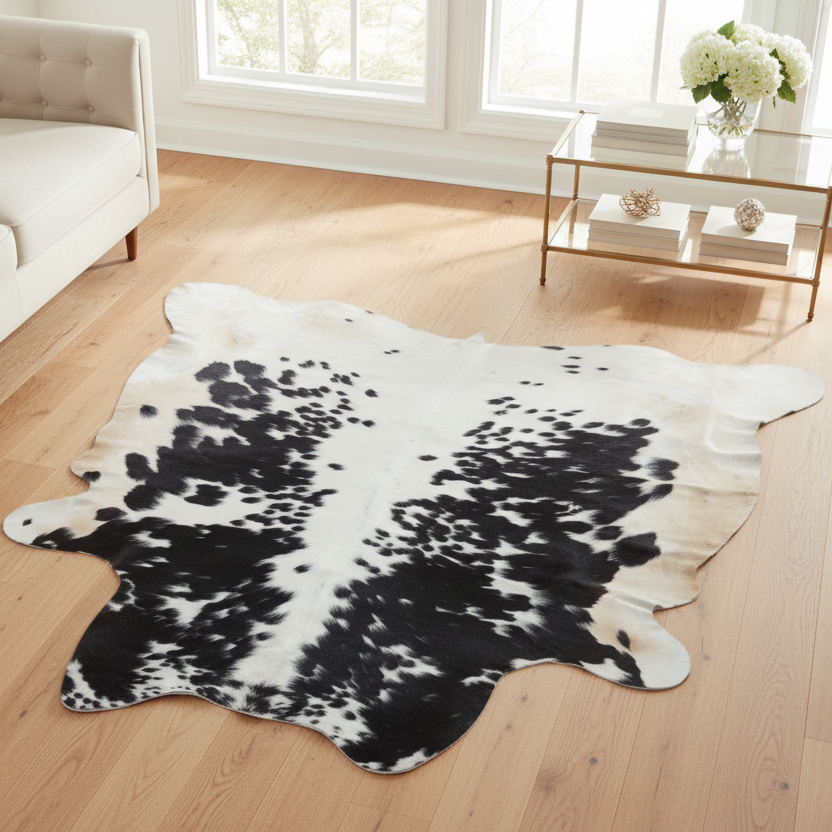Black & White Cow hide Rug 4X4 FT
