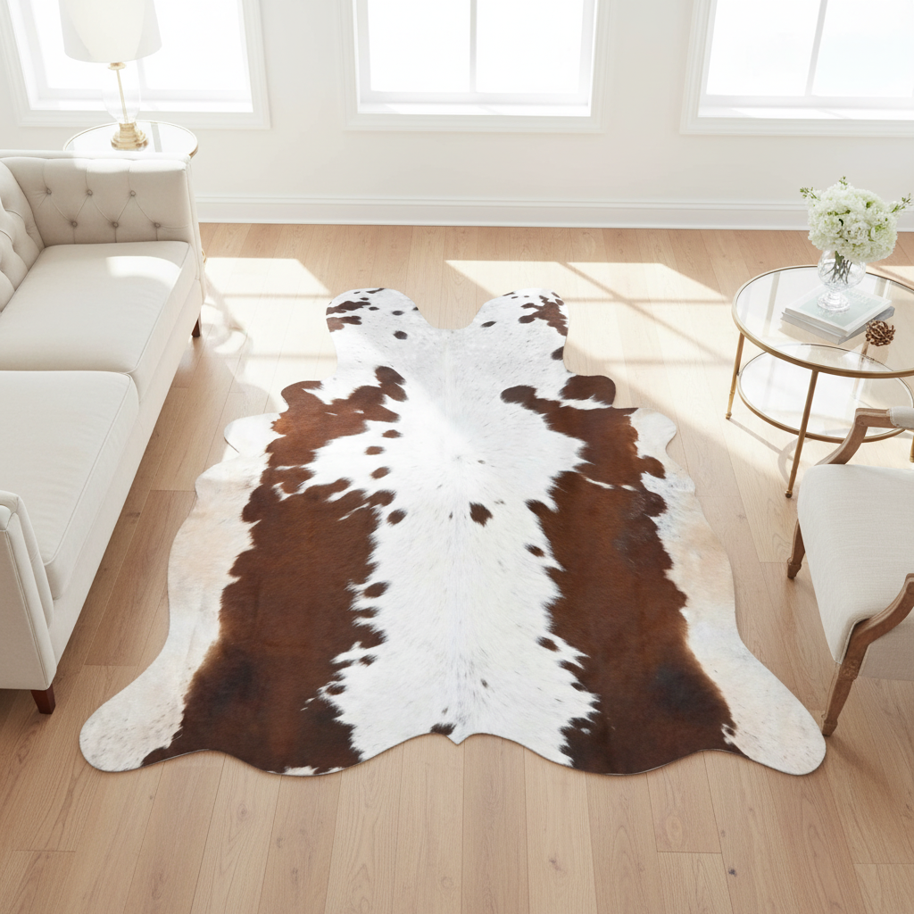 Brazilian Brown & White Cow hide 4.5x4.5 FT