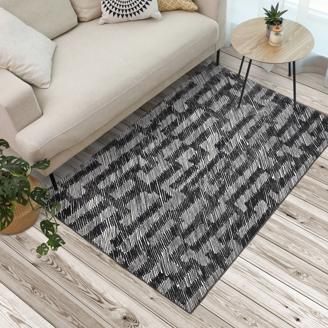 Black & Grey Geometric Turkish Rug 5X8 Ft