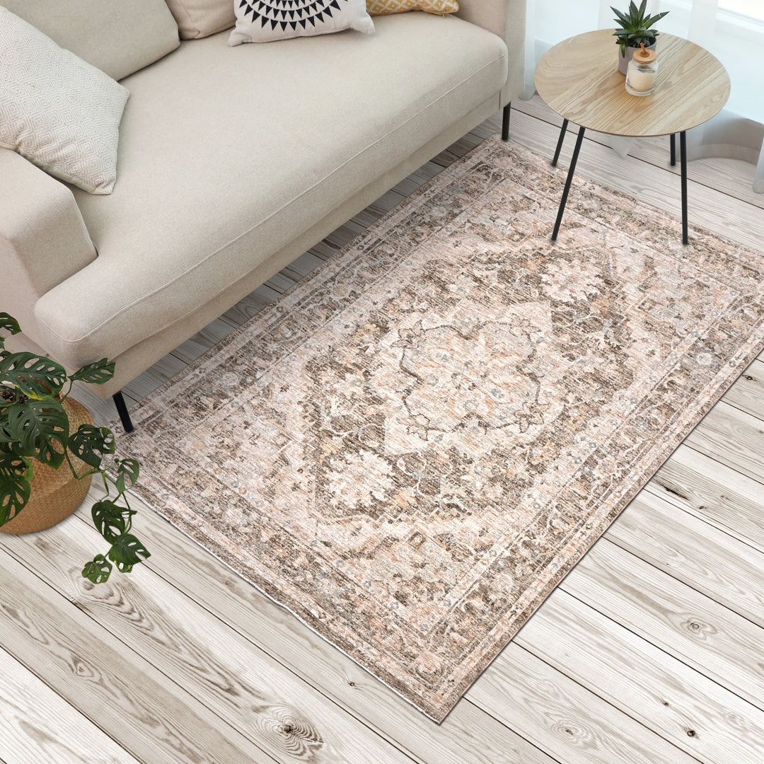 Brown Floral Turkish Rug 4X6 Ft