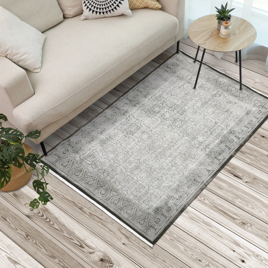Charcoal Turkish Embossed Rug 5x8 FT
