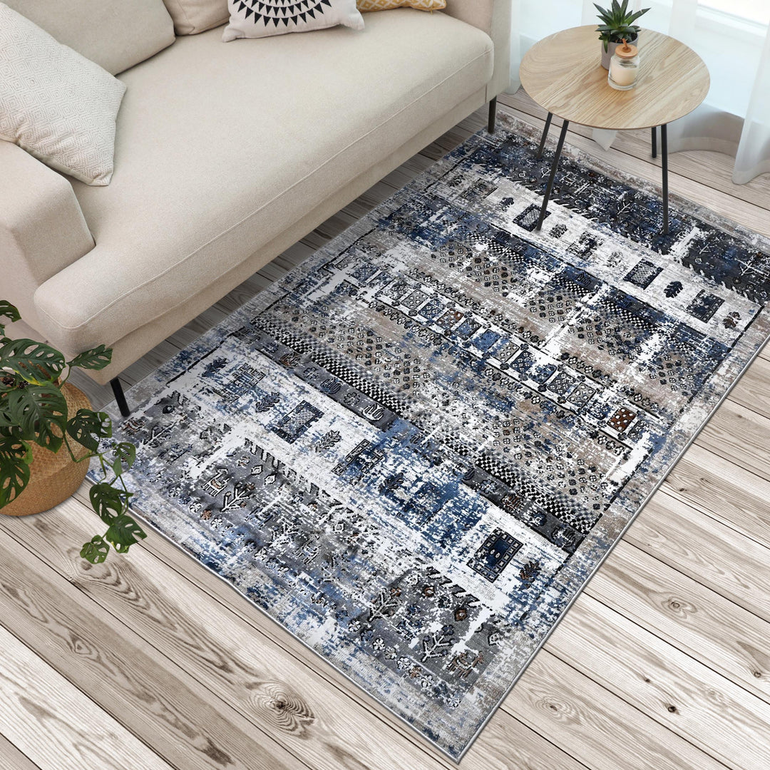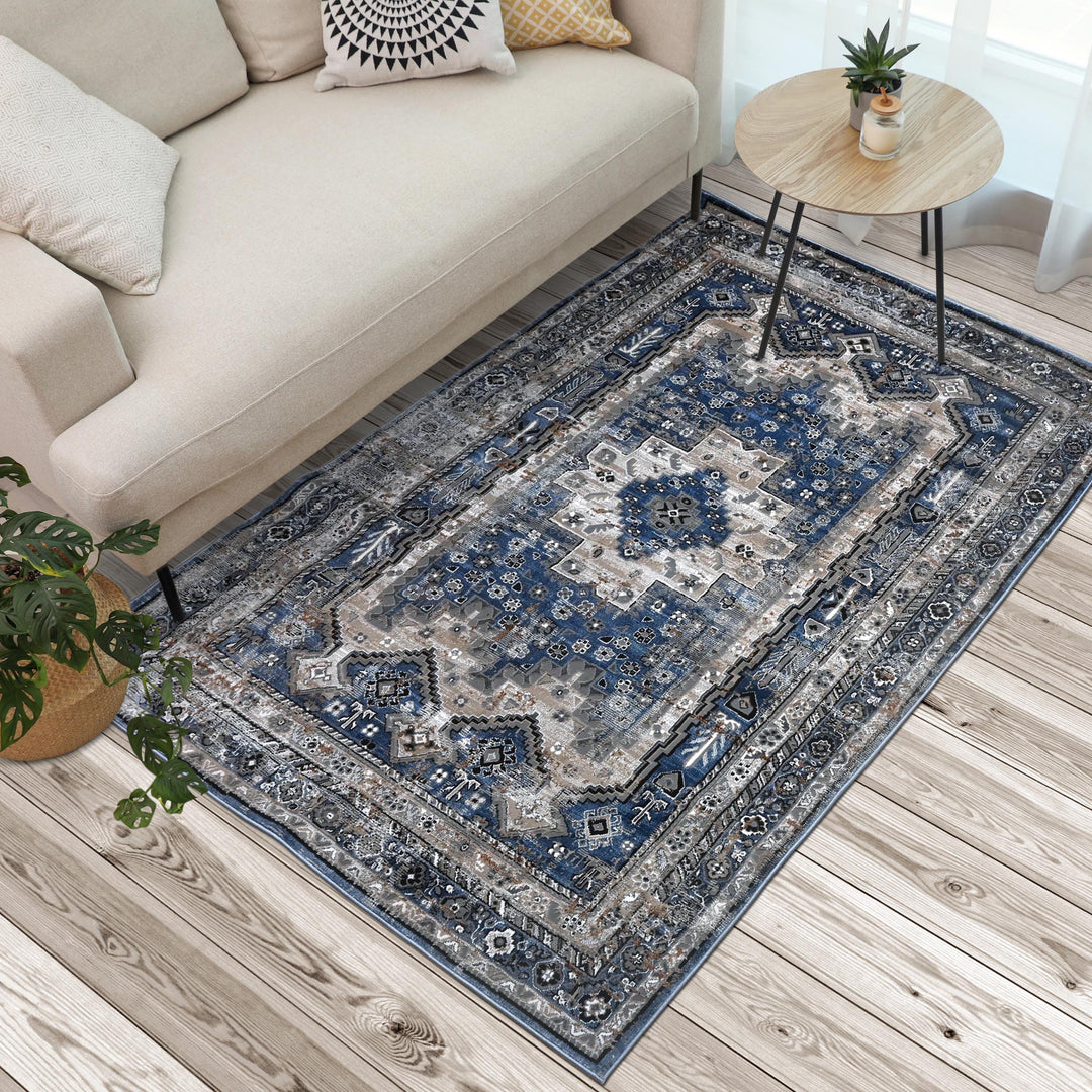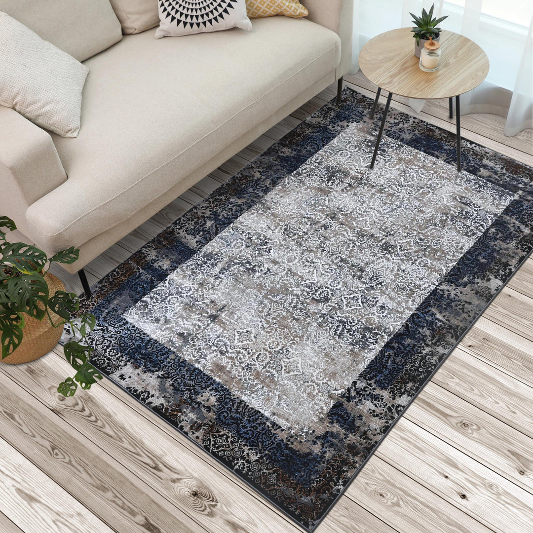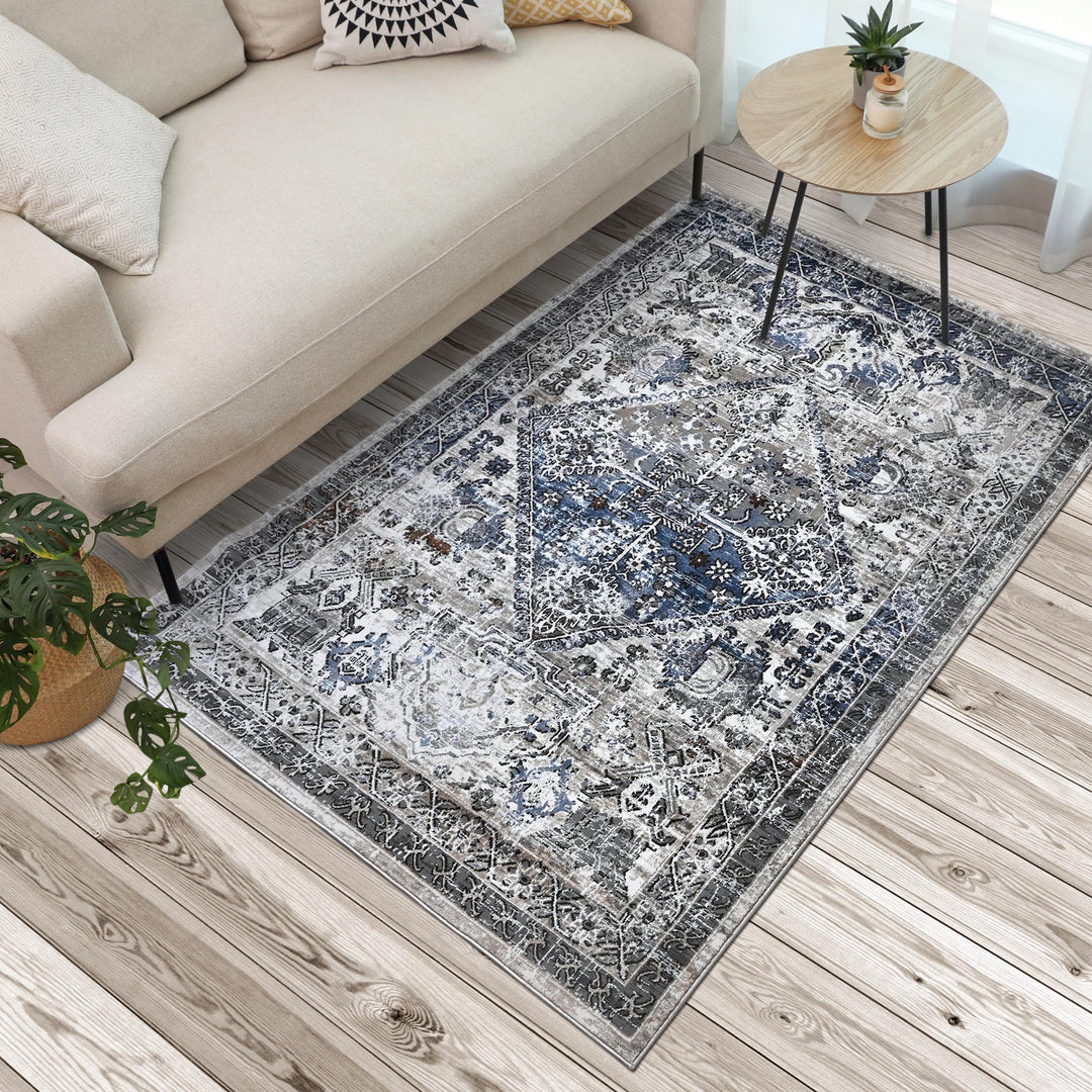 Blue Grey Turkish Rug 5X8 ft