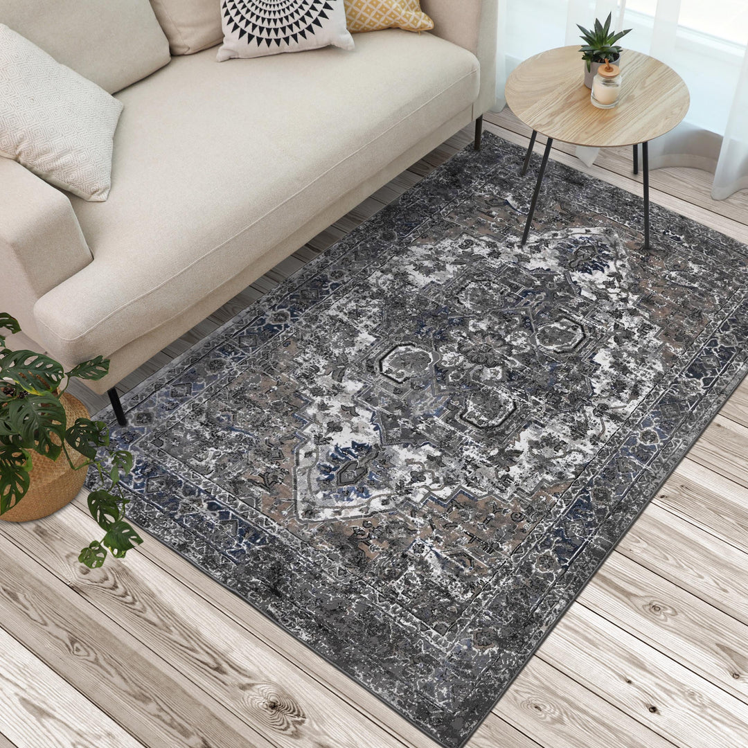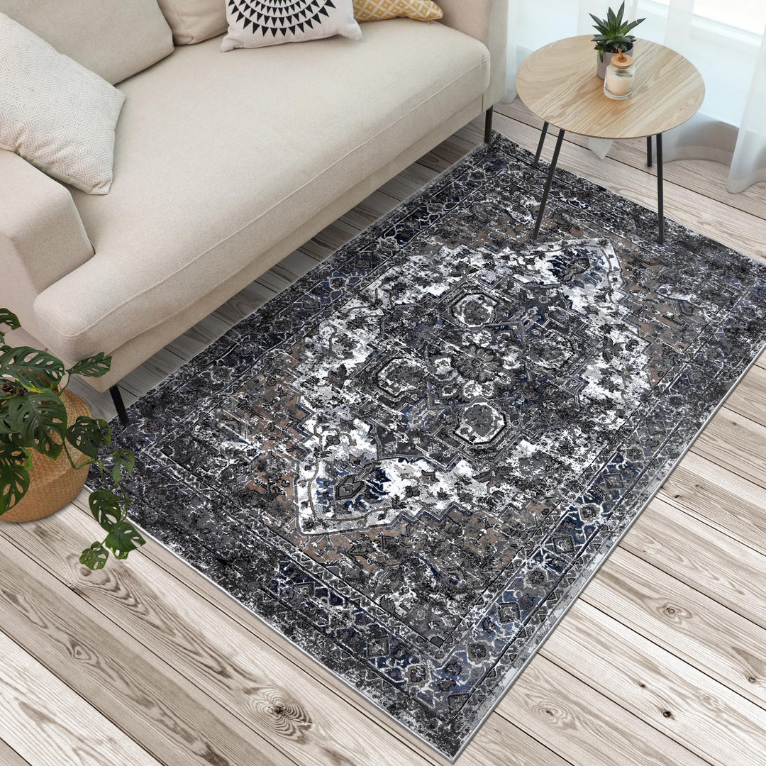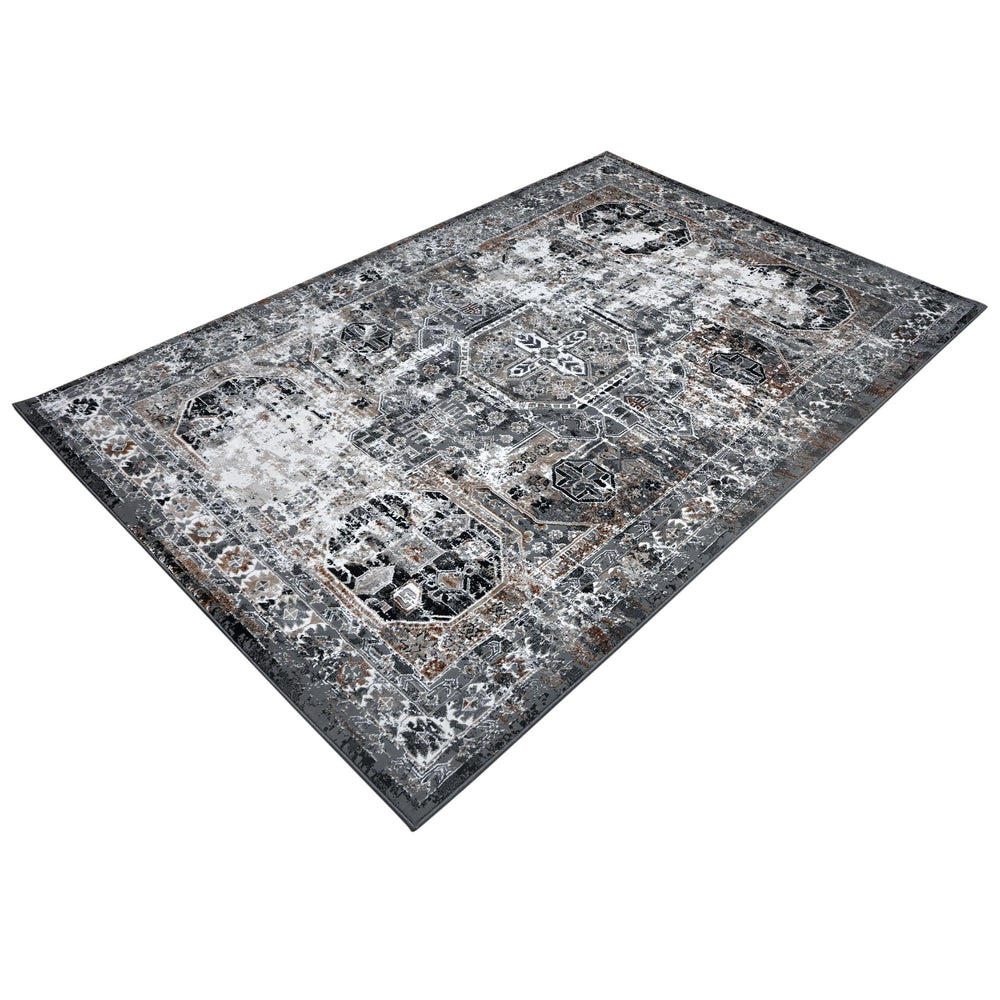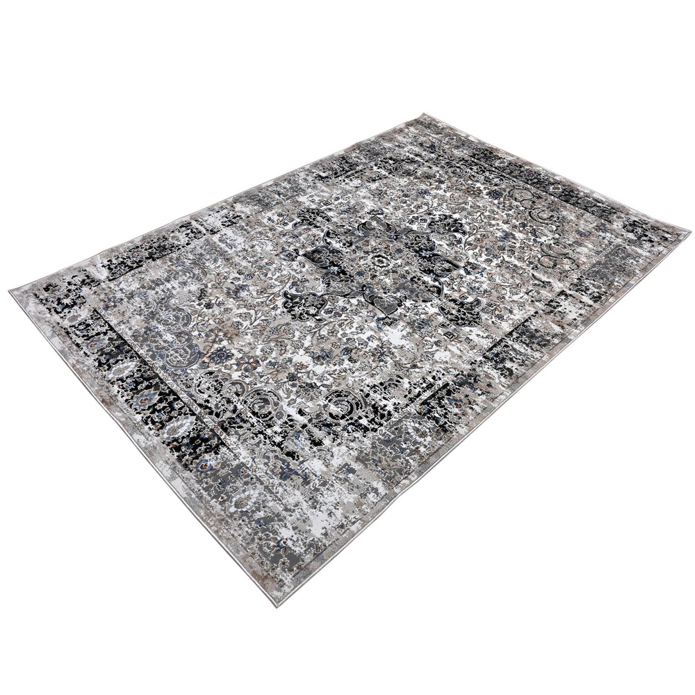 Grey Black Floral Turkish Rug 5X8 ft