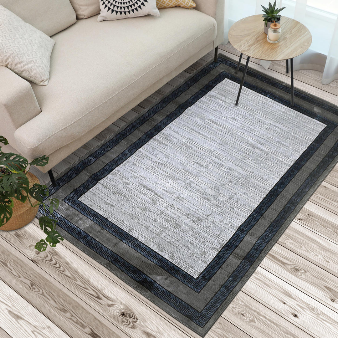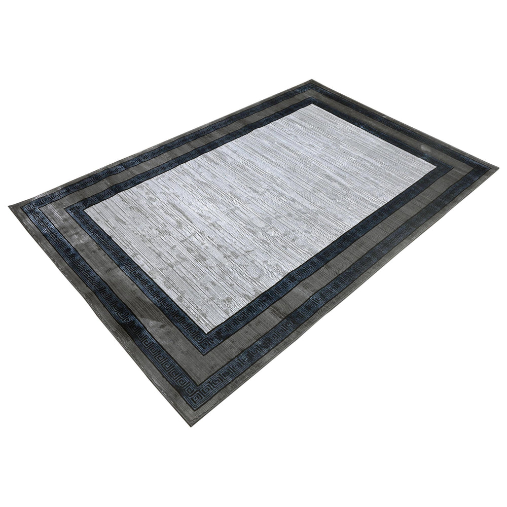 Grey Black Border Turkish Rug 5X8 ft